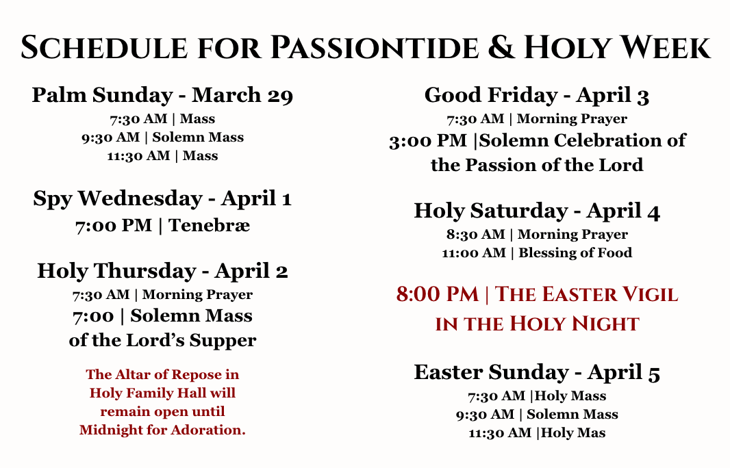 Saturday, March 21 after the 5:15 PM Mass