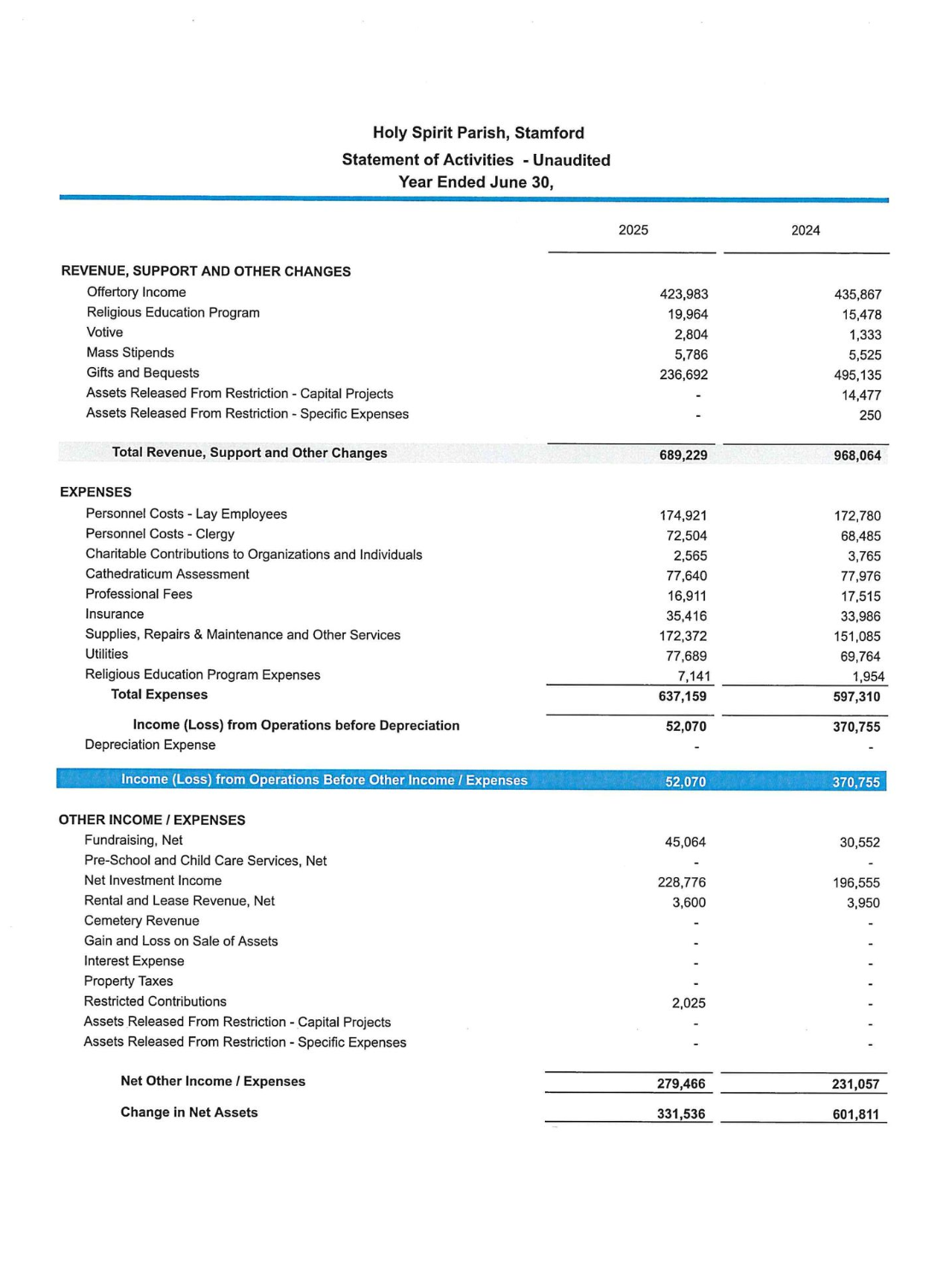 Bishop Caggiano has established the first Sunday of December every year as Accountability Sunday when annual financial reports will be made available within each diocesan entity.